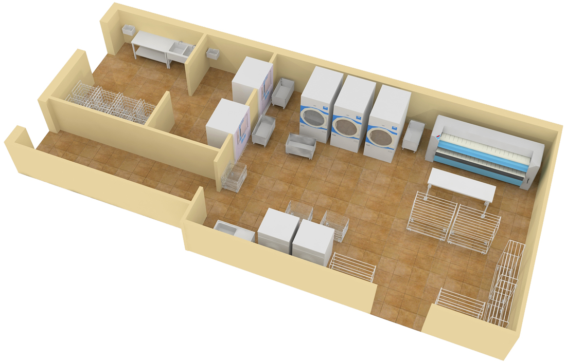Промышленная прачечная представляет собой комплекс взаимосвязанных машин для транспортировки, стирки, сушки, глажки, финишной обработки и складывания белья…